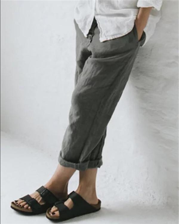 Linen Solid Women Causal Plus Size Daily Ourdoor Pants