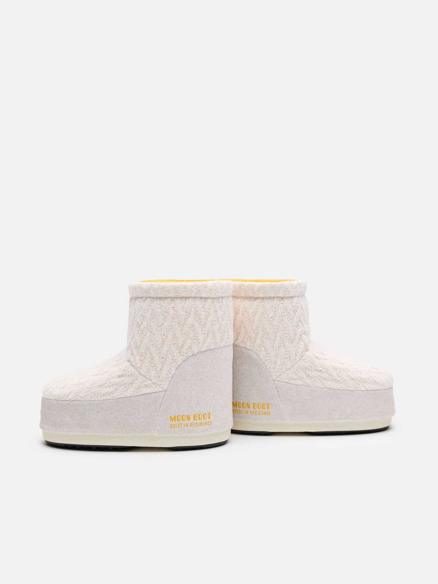MOON BOOT X GUEST IN RESIDENCE ICON LOW NO LACE WHITE SAND KNIT BOOTS
